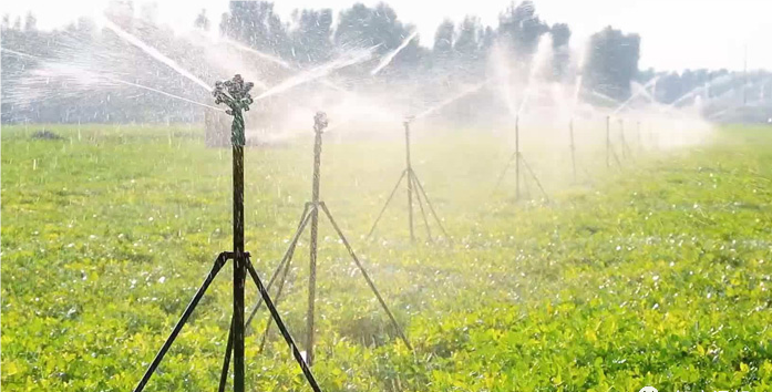 噴灌一般適用于苗木較大的園林進(jìn)行灌溉。一般利用機(jī)械和動(dòng)力設(shè)備,使水通過(guò)噴頭射至空中,分散成雨滴狀態(tài)降落園區(qū)的灌溉方法。噴灌設(shè)備由進(jìn)水管、抽水機(jī)、輸水管、配水管和噴頭等部分組成,可以是固定式的,半固定式的或移動(dòng)式的。此法節(jié)省水量、不易破壞土壤結(jié)構(gòu)、可以調(diào)節(jié)地面氣候且不受地形限制。