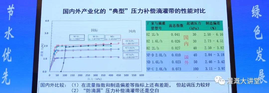 ? ? ? ??李教授從微灌常用產(chǎn)品(滴灌帶、滴頭、壓力補(bǔ)償?shù)喂喙艿裙嗨鳎?,同國外同行的比較中,說明區(qū)別和建議。對(duì)國內(nèi)產(chǎn)品研發(fā)上給與肯定,同時(shí)也對(duì)市場(chǎng)中產(chǎn)品質(zhì)量的參差不齊擔(dān)憂。