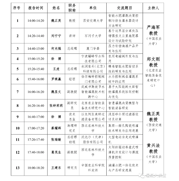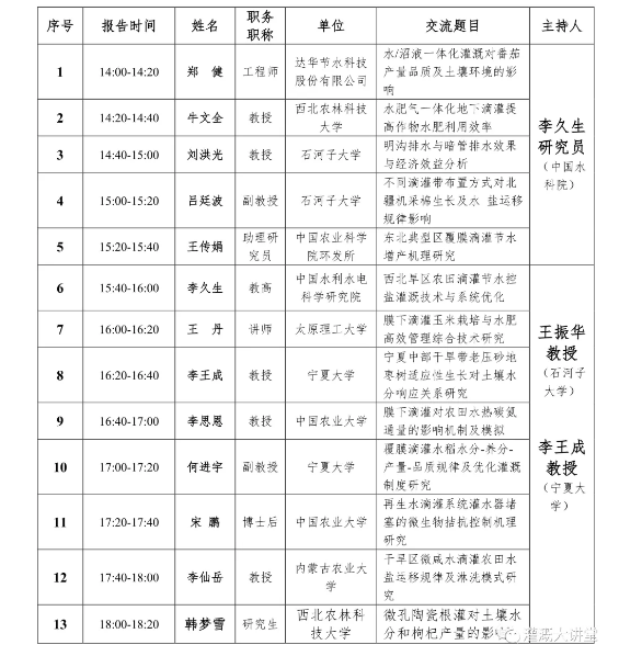 三、7月26下午分為四個(gè)分會(huì)場(chǎng):節(jié)水灌溉理論、節(jié)水灌溉技術(shù)、節(jié)水灌溉裝備研發(fā)、節(jié)水灌溉模式集成與應(yīng)用。