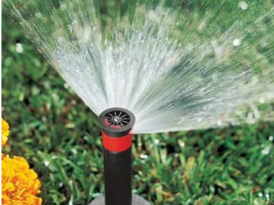 草坪:選擇彈出高度為10cm的地埋噴頭,工作時,噴頭在水壓力作用下,跳出地面,進(jìn)行灌溉。